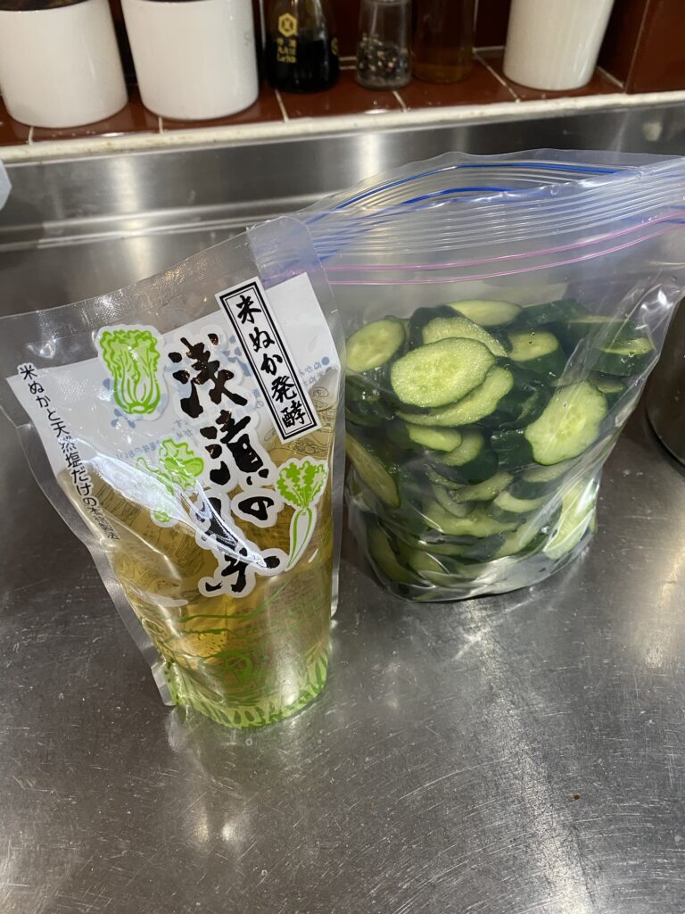 キュウリをジップロックに入れて、ツルヤブランド(最近OEMしただけで製造元はアイワ)の浅漬けの素を一袋入れるだけ。